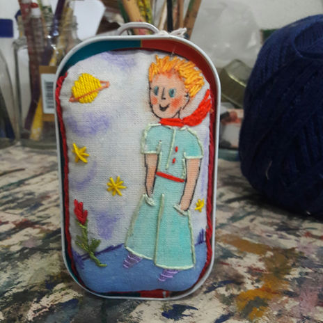 O Bordado em Conservas, faz parte de um trabalho de ressignificação do lixo, transformando objetos descartáveis em pequenas obras de arte. Além de latas de vários tipos, atum, sardinha, biscoitos, manteigas, etc, também bordo, embalagens de papel e isopor, onde o inútil , com auxílio de linhas, tintas e colagens, passam a unir universos distintos, seja ele literário, político ou social. A ideia é criar um olhar crítico e poético, sobre os objetos que nos cercam cotidianamente.